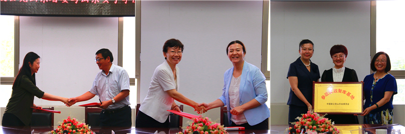 会上,致公党中央办公厅综合处处长、妇女工作委员会秘书长刘瑛和学校妇女研究与发展中心主任刘中文签署协议。省政协委员、致公党省委秘书长孙晓筠和学校科研处处长李缨签署协议。致公党中央妇女工作委员会副主任、省政协常委、致公党省委专职副主委姜明和学校党委副书记王淑霞为学校授牌“致公党山东省委参政议政智库基地”。