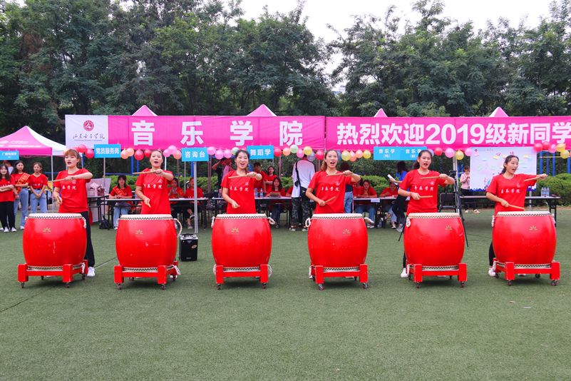 在各学院迎新点,各具特色的迎新方式吸引了众多目光。有的载歌载舞,有的身着异国服饰,有的亮出智能机器人,有的结合专业开展为新生家长量血压送健康活动,充分体现了不同学院、不同专业的特色与亮点。一顶顶帐篷依次排开,党员示范岗、党员服务窗口,以人为本、便捷高效、绿色畅通的迎新工作得到广大新生和家长的一致好评。