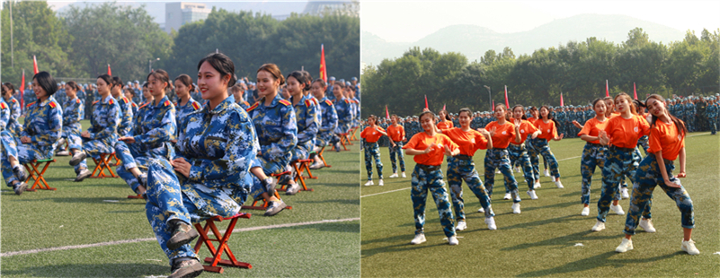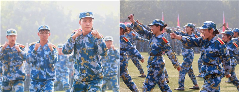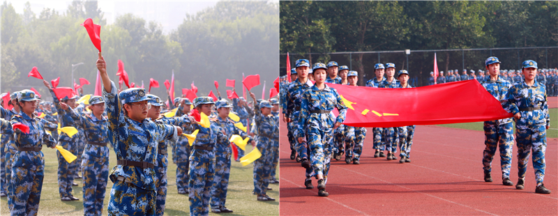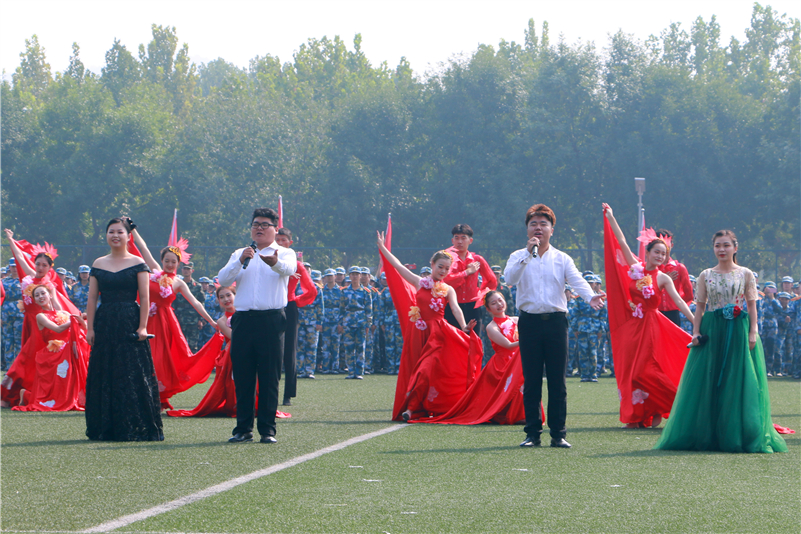 大会在隆重的升国旗仪式中拉开帷幕,伴随着雄壮的国歌,国旗护卫队的同学将五星红旗冉冉升起。接下来进行的分列式,四十二个连队喊着响亮的口号、踏着整齐的步伐,依次经过主席台接受检阅,展现出女院学子英姿飒爽、意气风发、自强不息的精神风貌。分列式后,进行了军训汇报表演,项目丰富,形式多样,注重融入爱党、爱国、爱军教育内容,既有身姿矫健,拳脚敏捷的擒敌拳,也有利刃出鞘、英勇威武的匕首操,还有展现女院大学生优雅端庄之仪态、文明修身之作为的礼仪操、健美操表演,更有向祖国70周岁生日献礼的旗语操和爱国歌曲合唱。两百余名同学组成的旗语操表演方队,挥动红黄两色旗帜,用海军旗语打出了“坤德含弘 至善尚美”的校训,“军民鱼水一家亲”、“我爱你中国”等美好祝福。《为祖国干杯》、《强军战歌》等合唱节目,唱出了强军梦、强国梦的伟大中国梦。