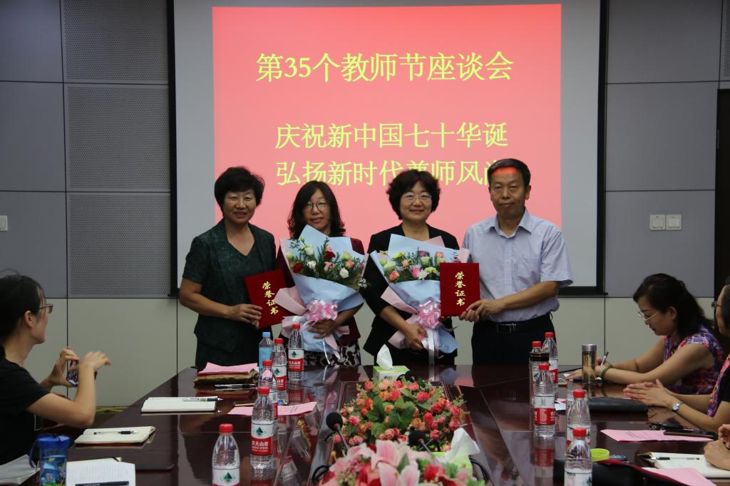 在第35个教师节来临之际,为进一步激励全校教职工增强责任感和使命感,切实营造尊师重教的浓厚氛围,9月10日下午,学校召开庆祝教师节座谈会,表彰从教满30年的教师和学校2019“最美教师”,举行新入职教师宣誓仪式,新老教师围绕“厚植爱国主义情怀、勇担立德树人使命”畅所欲言,共话女院美好未来。学校党委书记郭翠芬、校长盛国军、副校长贺兴利、纪委书记黄晓彦、副校长侯素美出席会议。组织部、宣传(统战)部、人事处、教务处负责人以及从教满30年的教师、学校评选的2019“最美教师”、新老教师代表参加座谈会。会议由郭翠芬主持。