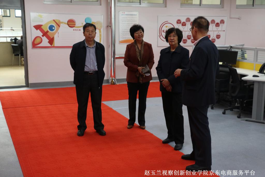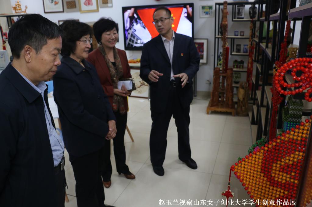 赵主席一行先后来到校史馆、山东女子创业大学众创空间、济南槐荫区跨境电商孵化器、创新创业学院京东校园实训中心、音乐学院教学实训中心、教育学院教学实训室和学校附属幼儿园,视察了学生创业作品展示、电商服务和现场教学等。