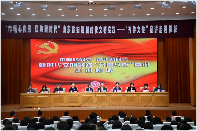 为推进学习贯彻习近平新时代中国特色社会主义思想和十九届四中全会精神,引领广大妇女“巾帼心向党建功新时代”,宣传女性先进典型事迹,由山东省妇联主办、学校社会与法学院党总支参与承办的新时代文明实践“齐鲁女性”宣讲团走进基层活动首站在聊城举行,学校部分专业教师参与了宣讲活动。