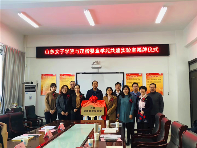 学校科技产业处处长刘明和茂楷婴童学苑总经理吕斯文共同为“山东女子学院-茂楷婴童学苑共建早期教育实验室”揭牌。