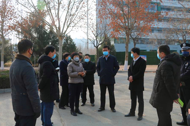 1月28日上午,济南市长清区委常委、宣传部长曲京鹏,崮云湖街道党工委书记赵国,以及大学城指挥部、大学路派出所负责同志一行7人来学校检查指导新型冠状病毒感染的肺炎疫情防控工作。学校党委书记郭翠芬,副校长贺兴利、侯素美,以及党委院长办公室、保卫处、后勤管理处等相关部门负责人陪同检查。