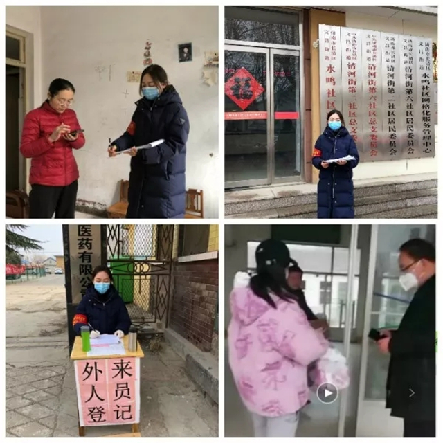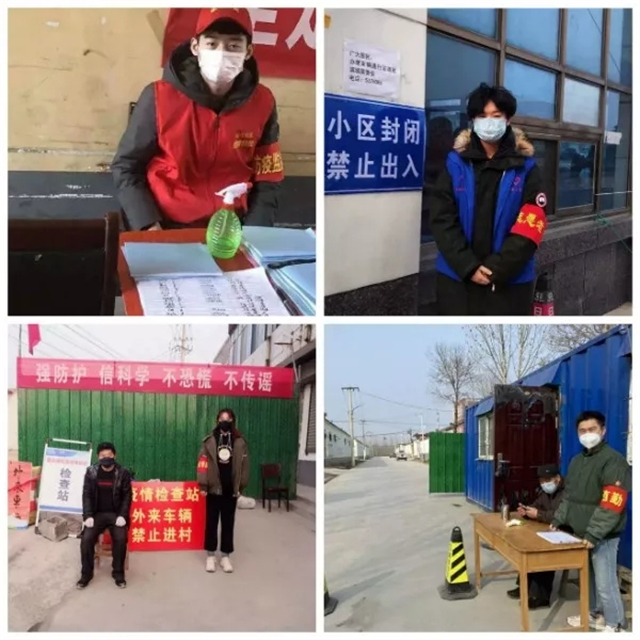 会计学院学生党员阴春梅、马乾雨、朱金凤、邱子真、赵文钰、韩燕、赵茹、郭凤翔等主动亮明党员身份,及时参与所在村镇、社区的防控工作,他们与基层干部一道,执勤查岗、发放张贴宣传单页、筛查登记、测量体温、劝返外来车辆,扎实工作。