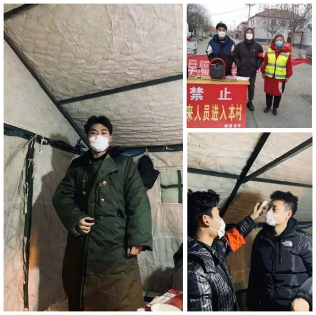 蔡闯和伙伴们主要负责在村头值班,对进出人员进行体温检测和记录。有时也会对村里进行酒精消毒。有人员进出村口,他们会仔细的询问记录,有点话语权的蔡闯也会更积极的去做好每一个细节。