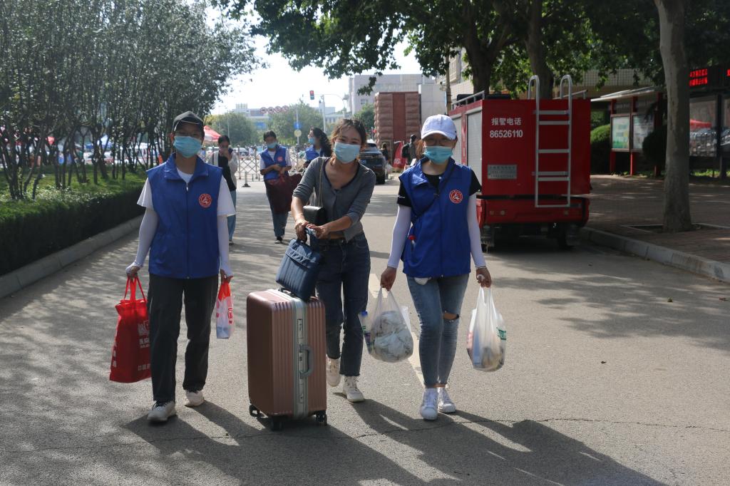 在做好疫情防控的同时,各学院还推出了很多暖心举措,用便携手拉车等,帮助同学们运送行李,为同学们准备了防控物品,准备了绿植、明信片等小礼物。快递中心开通线上预约取件。食堂优化供餐服务,推出简餐打包、堂食就餐等多种方式,延长供餐时间,推行错峰就餐等。