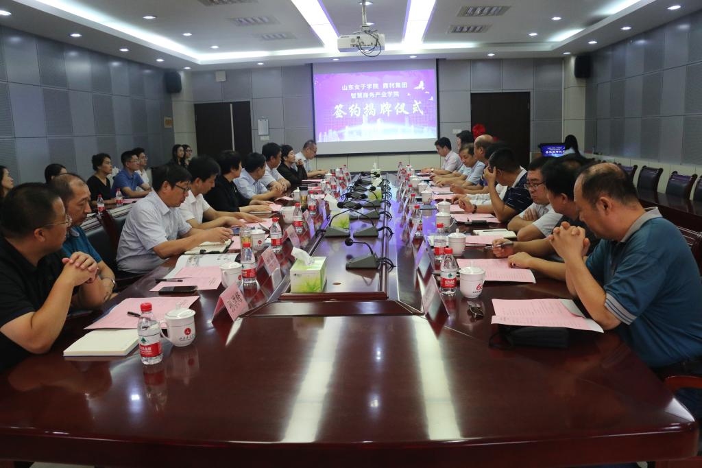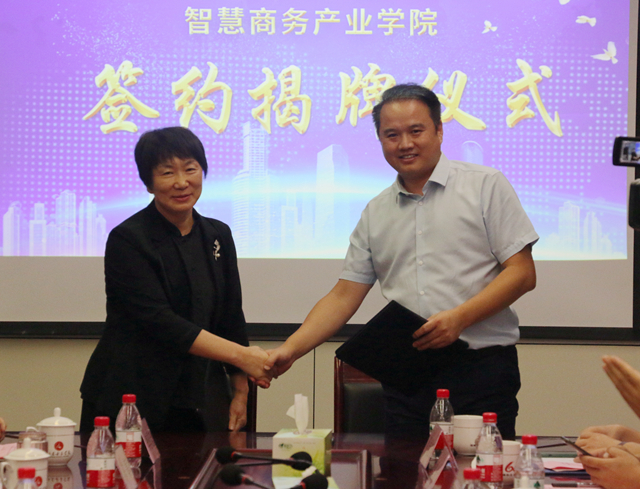 9月16日,学校与鼎利集团共建“智慧商务产业学院”签约揭牌仪式举行。长清大学城建设指挥部总指挥、区宣传部长曲京鹏、办公室主任焦玉铭、槐荫区商务局副局长陈蓁,校长盛国军、副校长侯素美、鼎利教育副总裁马常松等出席。仪式由学校创新创业学院负责同志主持。