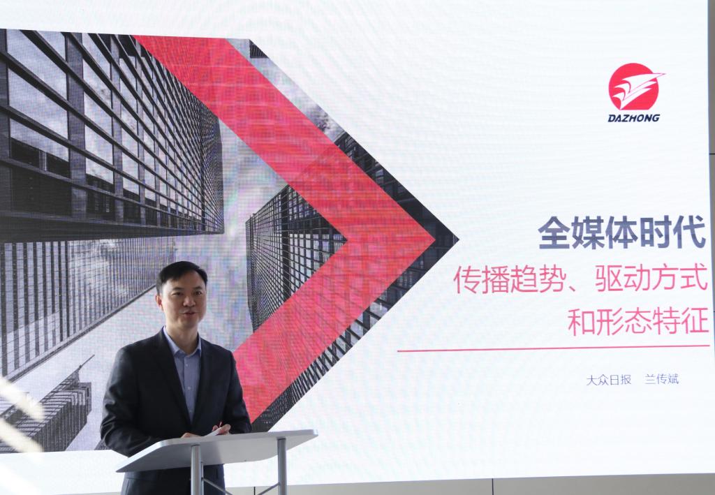 兰传斌为学校“大众日报学生记者团”授牌,向学校赠送了最新出版的书籍《发往前线的家书》,并以《全媒体时代的趋势驱动》为题,为学校师生做了一场精彩的学术报告。报告生动鲜活地阐述了全媒体时代的传播趋势、驱动方式和形态特征等内容,加深了师生对全媒体时代新闻传播的理解。