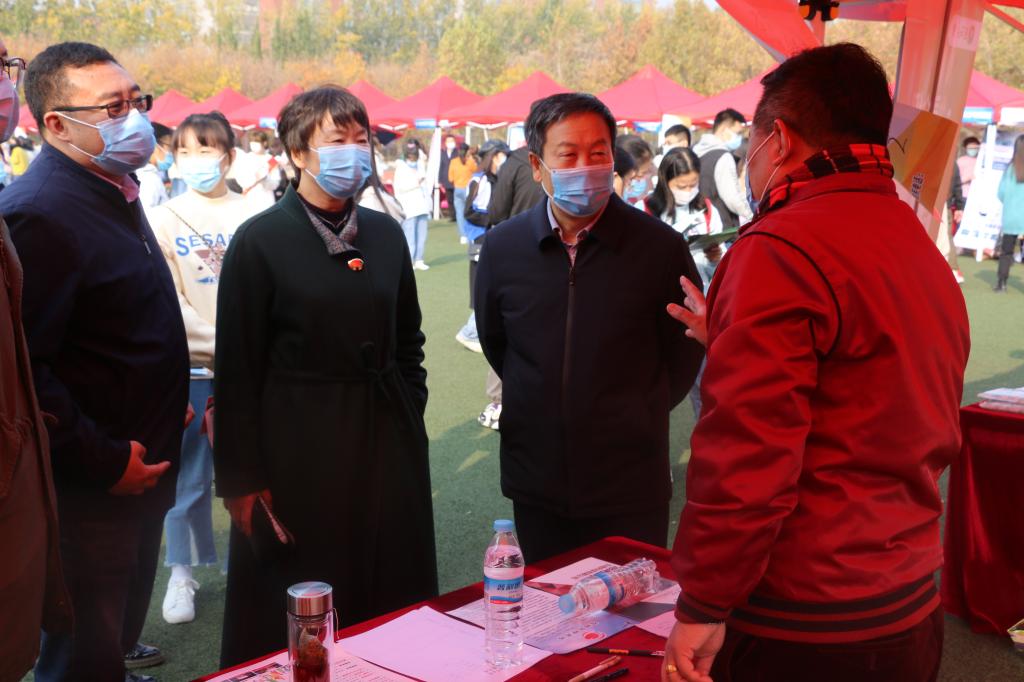 招聘会现场设置安全防疫区、简历诊断咨询区、职业测评指导区、企业招聘区及企业洽谈区五个不同功能区域,吸引来自全省各地、各行各业近300余家用人单位参加,为学校毕业生提供了近5800个就业岗位。现场人头攒动,就业双选互动积极,约有2300余名毕业生与用人单位初步达成就业意向。招聘会期间,校长盛国军、副校长侯素美多次莅临现场指导工作,并与招聘单位和毕业生进行亲切交流。