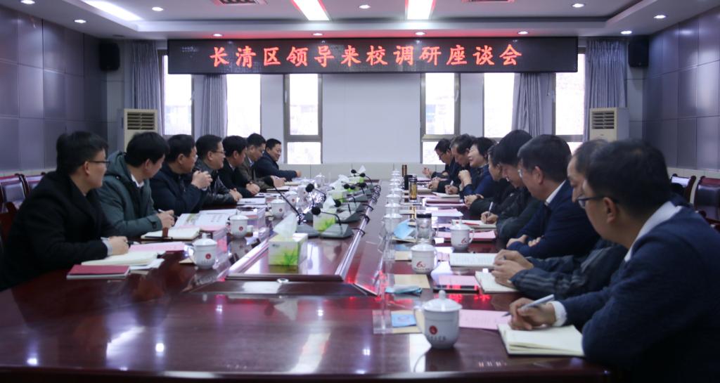 12月30日下午,长清区委书记赵居安一行7人来校座谈交流,党委书记郭翠芬、校长盛国军、副校长贺兴利参加座谈。