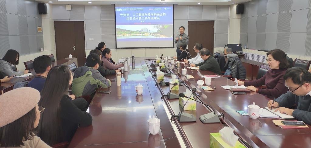 1月12日下午,学校举办新工科建设研讨会,邀请原临沂大学校长杨波教授以“大数据、人工智能与多学科融合的信息技术新工科专业建设”为题进行专题讲座研讨。副校长刘恩允,学校教务处、科研处、数据科学与计算机学院负责人及部分教师代表参加研讨会。