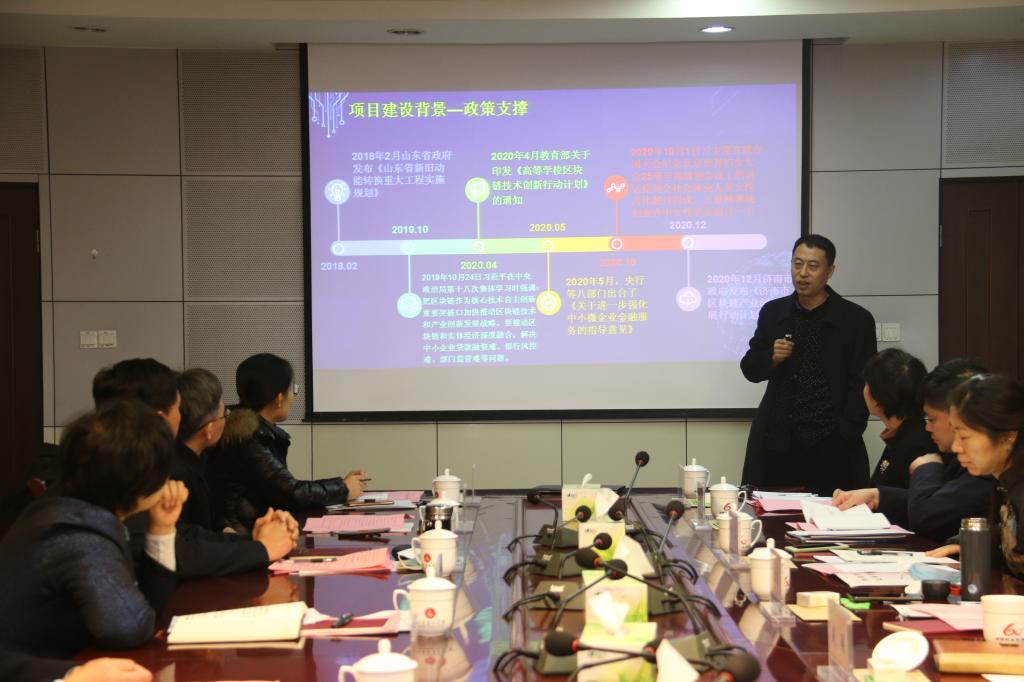 1月26日上午,“区块链金融科技服务平台-女性创业中小微企业融资服务平台”启动仪式在学校举行。山东省妇联党组成员、副主席玄祖香、发展部部长张金宁,济南市教育局总督学成刚、产业发展处处长王志国,中国人民银行济南分行金融研究处副处长、山东省金融学会常务副秘书长李菡,济南市长清区工业和信息化局副局长闫新礼,中国农业银行山东省分行国际金融部副总经理张丽,浦发银行千佛山支行行长孔令孜,山东省跨境电商研究会会长、山东财经大学国际经贸学院院长王培志教授,山东省大数据研究会会长石玉峰教授、秘书长李敬,山东省小额贷款企业协会副秘书长崔玉波、业务部主任李真,山东知链科技信息有限公司总经理张永娟等政府部门领导、高校和企业专家参加座谈会。学校党委书记郭翠芬、副校长贺兴利以及学校教务处、科技产业管理处、招生就业处、经济学院、工商管理学院等部门负责人参加了会议。启动仪式由贺兴利主持。