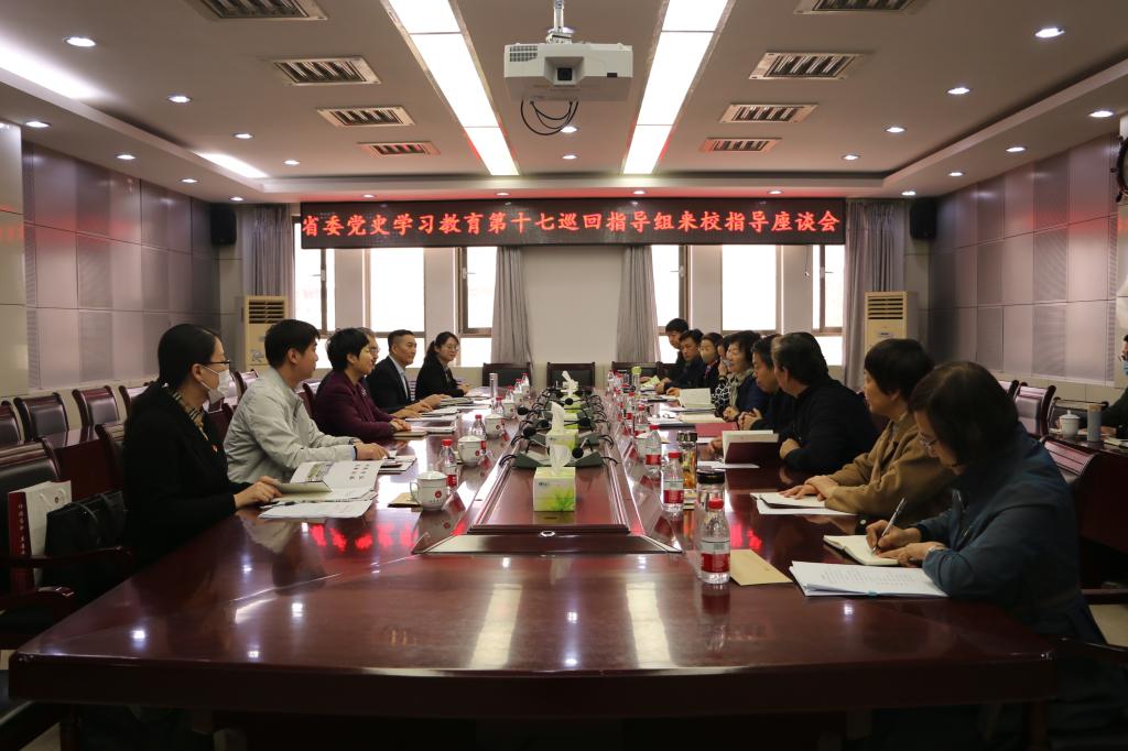 4月1日,省委党史学习教育第十七巡回指导组组长刘淑秀、副组长齐浚等一行6人来校指导党史学习教育工作,党委书记郭翠芬及学校党委领导班子成员参加座谈会。
