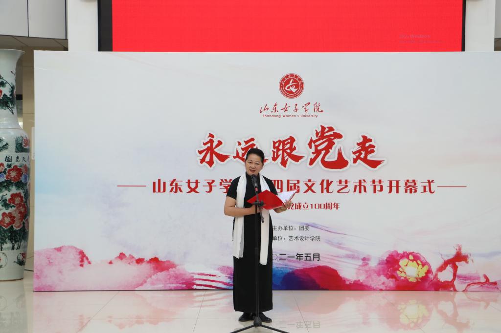 盛国军在致辞中表示,学校一直高度重视校园文化的育人功能,坚持以美育德、以美启智、以美健体、以美促劳,促进学生全面发展,美育工作成效显著,收获颇丰。希望山东女子学院文化艺术节能够成为美丽的翅膀,携着“坤德含弘,至善尚美”的校训,带我们用艺术献礼建党百年华诞,用艺术致敬伟大祖国,用艺术徜徉美好未来!希望各位老师、同学们能把文化艺术作为熏陶伴随个人成长的爱好,不断成就优雅人生,创造幸福生活,共建百年女大。