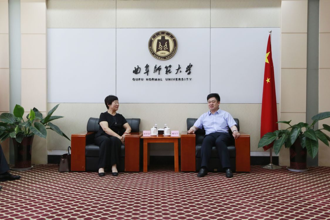 戚万学对郭翠芬一行表示欢迎。简要介绍了曲阜师范大学的发展情况和办学成果,表示希望两校加强交流,深化合作,互学互鉴,携手共进,不断提升办学质量,共同为新时代高等教育事业作出积极贡献。