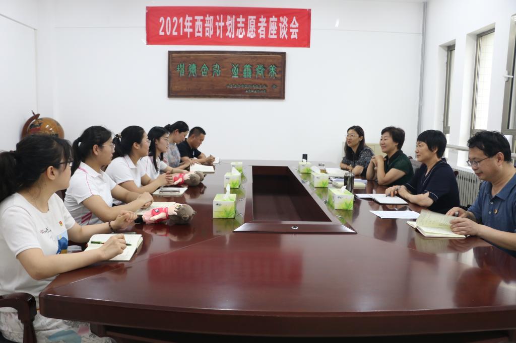 6月25日下午,学校2021年西部计划志愿者座谈会召开。党委书记郭翠芬、副院长侯素美出席会议,学生工作部、团委负责同志,相关学院教师代表以及西部计划志愿者参会。