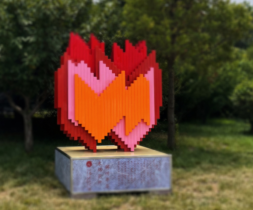 7月1日,“木棉花开”艺术雕塑于学校巾帼广场东北侧落成,成为校园中一处新的亮丽风景。为庆祝党的百年华诞,也为迎接学校建校七十周年,经学校艺术设计学院和团委集体研究论证,艺术设计学院青年教师魏韬妤主持设计了“木棉花开”艺术雕塑。5月27日,在学校第四届文化艺术节开幕式上,学校党委书记郭翠芬和魏韬妤老师共同揭幕了“木棉花开”雕塑模型,雕塑经过30天的精心制作完成。该雕塑参照木棉花造型设计,由五厘米宽的不锈钢方管拼接成十二层错落有致的版面,配色取自木棉花的颜色,并结合学校的标准色---女院红构成基本色调。