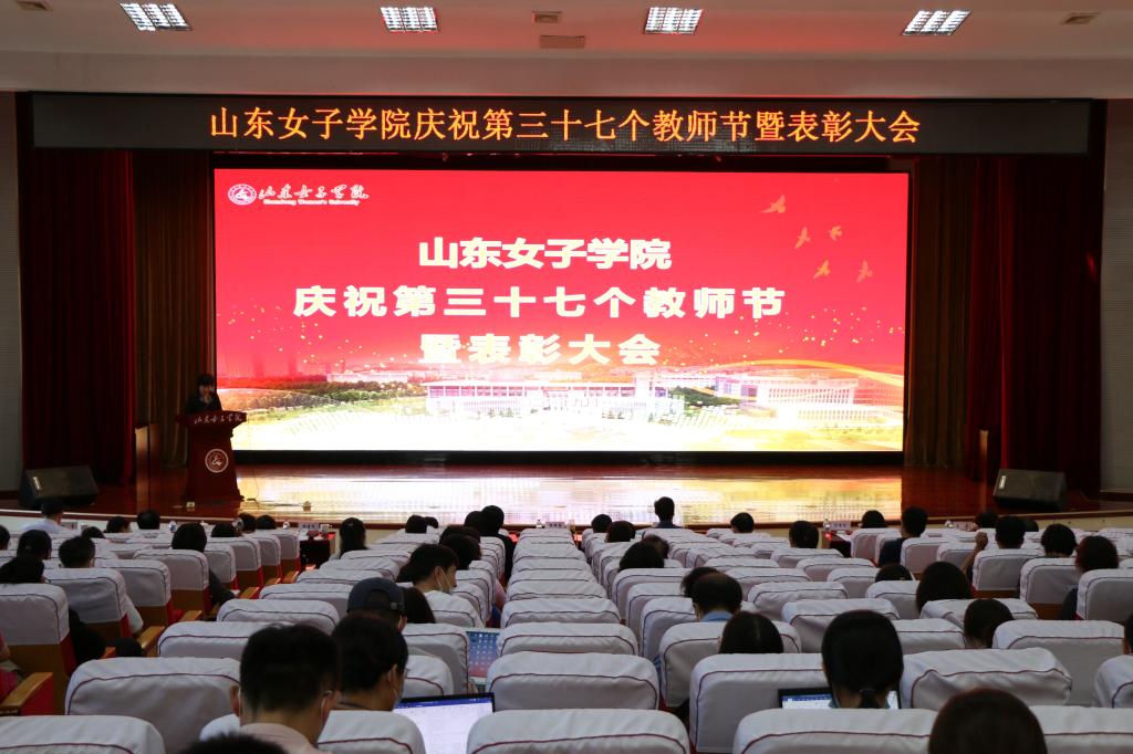 百年大计,教育为本。教育大计,教师为本。9月9日,在教师节来临之际,山东女子学院庆祝第37个教师节暨表彰大会在图书馆报告厅召开。全体在校校领导、荣退教职工代表、从教30年教职工、教师团队和教学名师、学校重大贡献奖获奖集体和个人、“最美女院人”称号获得者、全体处级干部、一线教师代表、科级干部代表、学生代表参加大会。党委书记郭翠芬讲话,党委副书记、院长盛国军主持大会。