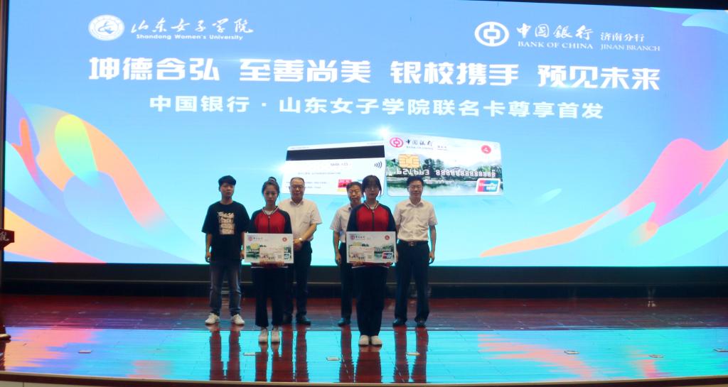 为进一步给广大师生提供优质便捷有特色的金融服务,9月16日,学校与中国银行共同举办中国银行·山东女子学院联名卡首发仪式。学院党委副书记、院长盛国军,中国银行济南分行行长景在伦、中国银行济南长清支行行长李虎以及相关部门负责人、师生代表参加活动。