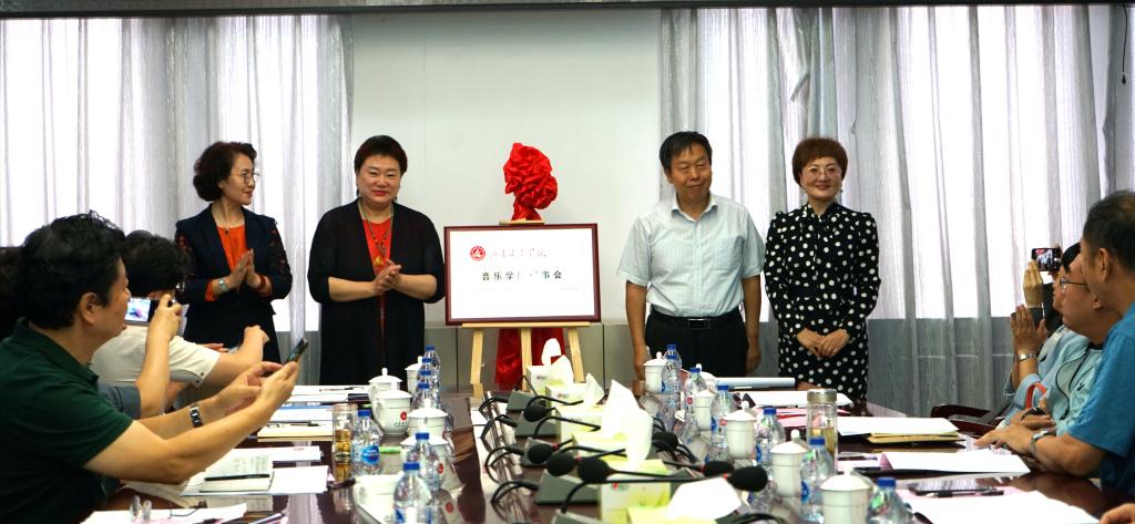 盛国军为名誉理事长、山东艺术学院副院长刘晓静颁发聘书;盛国军、刘晓静、山东歌舞剧院艺术指导于联华、宋小霞为理事会揭牌。刘恩允为理事会的成立致辞。她表示,音乐学院理事会的成立,成功搭建起学院和社会各界合作联系的新桥梁、新纽带,有利于整合社会办学资源,提升人才培养质量,形成更加紧密、科学、有效的产学研深度合作关系,形成校企融合发展、资源共享的新局面。