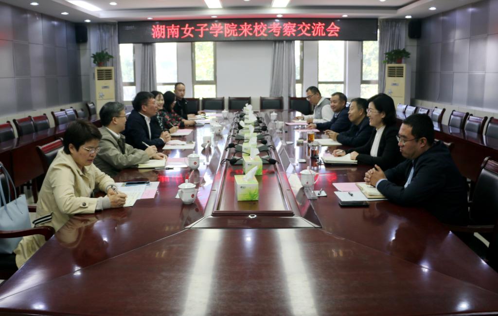 10月12日,湖南女子学院党委副书记、院长胡穗,党委委员、副院长莫文斌一行6人来学校考察交流。学校党委副书记、院长盛国军,副院长刘恩允及相关部门负责人参加了考察交流。