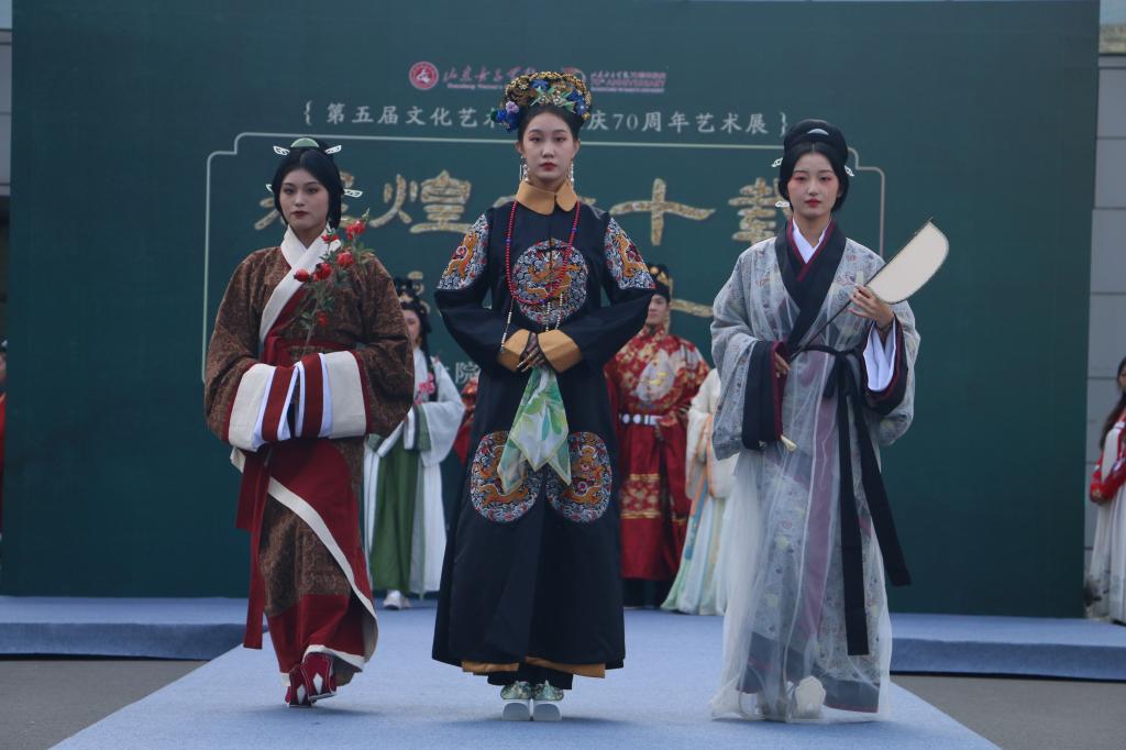 随后,现场观众前往图书馆参观“巧手巾帼·筑梦明天”女性手工艺主题展览、“辉煌七十载,献礼二十大”主题创作展和优秀学生柴怀安同学的个人作品展。观展同学们表示,“校庆艺术展带给我们美的享受,这里不仅有让人心潮澎湃的表演秀、优秀的艺术设计作品、精致的手工艺产品,还以这些艺术表现形式为载体,让我们感受到了深厚的中华优秀传统文化的底蕴,这是历史给予我们的馈赠,也是新时代女院人奋发进取的力量源泉。”