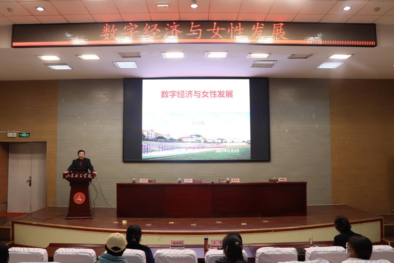 颁奖仪式结束后,叶文振教授以《数字经济与女性发展》为题做了报告,分别从数字经济与女性发展、数字经济与女性贡献、数字经济机遇和挑战等方面,讲述数字经济与女性发展之间的联系,指出中国数字经济的飞速发展以及对女性发展的重要意义。叶文振教授也对同学们提出了殷切希望,希望大家结合身边事深入研究,结合自己特长开展探索,共同为学校发展贡献力量。