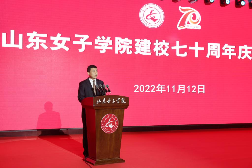 戴龙成代表济南市委市政府向学校致以美好祝愿。他说,自1952年在济南诞生的那一天起,山东女子学院就与济南紧紧联系在一起,砥砺前行的每一刻都烙上了厚重的泉城印记。七十年来,山东女子学院始终立足济南、面向济南、融入济南、服务济南,围绕妇女儿童工作、健康养老、乡村振兴等方面,开展了大量富有成效的工作,为济南经济社会发展作出了突出贡献。济南市将持续构建校地融合发展的长效机制,全力以赴为山东女子学院事业发展创造更加便利的条件,提供更加优质的服务。希望山东女子学院一如既往的关心支持济南发展,合力开启名城名校深度合作、共同发展的新篇章。