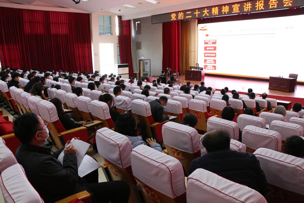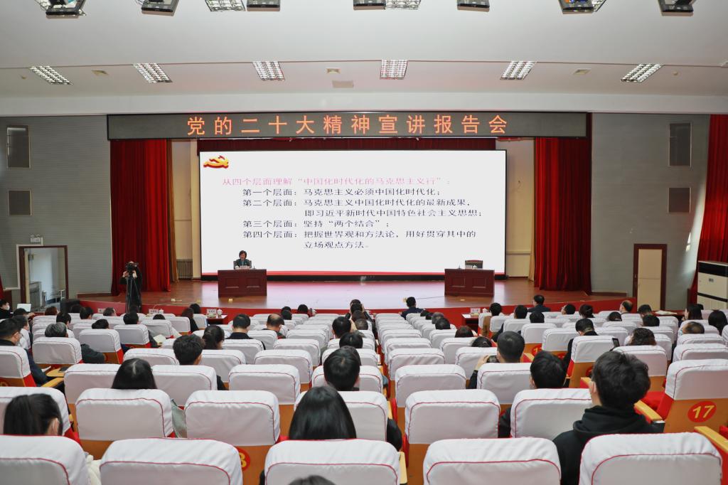 郭翠芬在总结讲话时指出,宣讲报告主题鲜明、思想深刻、精彩生动,既有深入浅出的理论阐释,又有联系历史现实的生动事例,还有放眼世界的国际视角,帮助师生加深了对党的二十大精神的理解,听后深受教育和启发。下一步,学校将结合宣讲报告,完整、准确、全面领会党的二十大精神,切实把思想和行动统一到党的二十大精神上来。要按照学校制定的工作方案,分专题开展学习研讨,通过专题培训、“三会一课”、主题党日等方式,开展多形式、分层次、全覆盖学习。要切实把学习成效转化为做好工作、推动高质量发展的生动实践,为实现学校“十四五”规划确定的各项任务,为加快建设应用型地方特色名校而努力奋斗。