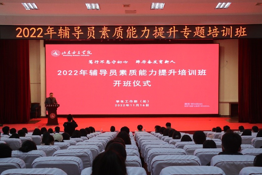 由全体学生工作队伍作曲、填词、创作的《山东女子学院学工之歌——初心》在开班仪式上进行了首播,新进辅导员旅游学院王晓平老师代表参训学员发言。