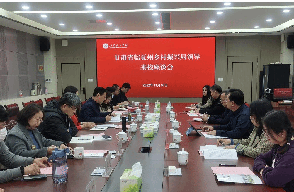 11月18日,甘肃省临夏州乡村振兴局党组成员、副局长石金龙一行来校洽谈校地合作事宜。学校党委委员、副校长贺兴利主持座谈会。济南市发改委对口支援处负责人、学校合作发展处及相关学院负责同志参加座谈。