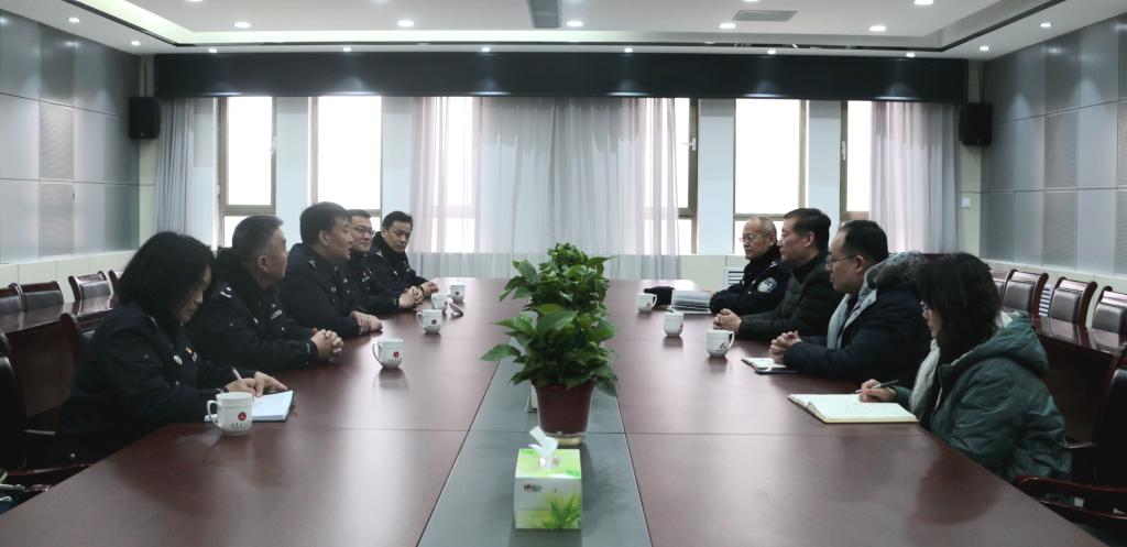 王君洲详细了解了学校警务室建设情况,实地查看了驻校高级警长办公环境,深入了解了高级警长入校后开展的工作,就进一步推进警校共建,以“高级警长驻高校”“一校一室一警”等工作机制为依托,不断提升公安部门服务高校的质量,全力为高校科研教育、人才培养保驾护航等方面进行了深入的交流,同时感谢学校对公安部门工作的理解与支持。