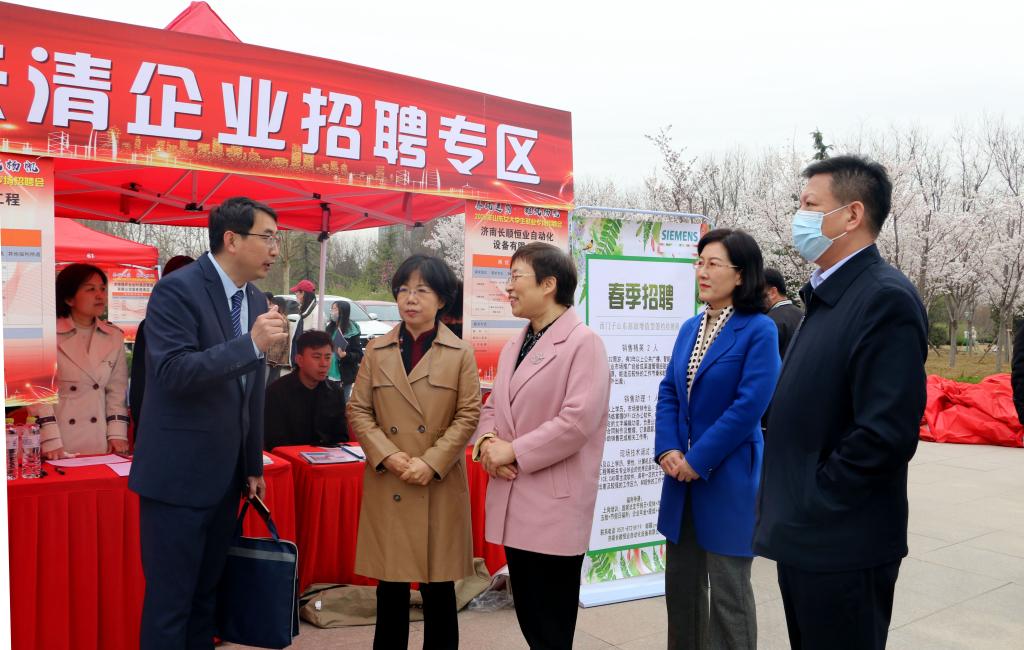 为贯彻落实党中央、国务院“稳就业”“保就业”决策部署,3月16日,“春风送岗 雏凤扬帆”2023年山东省女大学生就业专场招聘会在学校长清校区巾帼广场举行。山东省妇联副主席王洪霞、山东女子学院党委书记吕晓黎、山东省人社厅就业促进处四级调研员张健、省妇联、省人社厅相关处室负责人,“雏凤”巢负责人代表,学校其他领导班子成员、相关职能处室负责人、二级学院负责人,招聘企业代表,毕业生代表近150人参加开幕式。开幕式由学校副校长刘恩允主持。