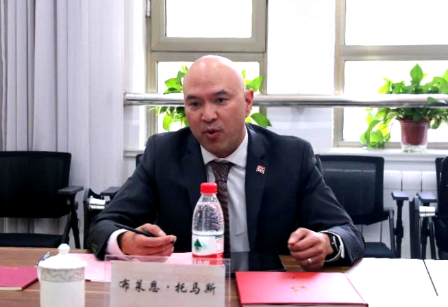 布莱恩·托马斯介绍了塞基诺谷州立大学基本情况以及与中国学校合作的情况,提出推动两校在教师学术交流和学生学分交换等领域开展交流合作的建议。