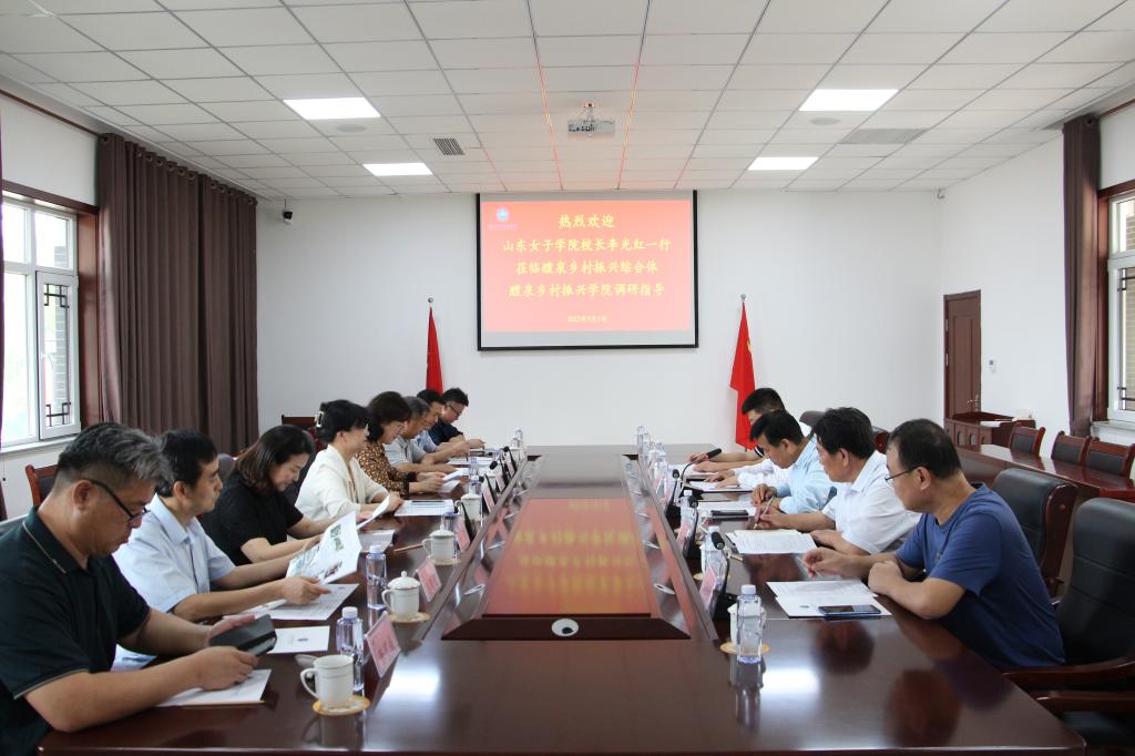 李光红对醴泉乡村振兴学院的热情接待表示感谢,对依托山东财经大学智库专家团队打造乡村振兴齐鲁样板醴泉模式的创新性思路、举措及取得的成绩给予高度评价。她介绍了山东女子学院在服务地方发展、推动校企校地合作方面的做法和经验,以及学校在引领儿童教育发展、老年康养服务方面的办学特色和成绩,希望充分利用双方优势资源,在康养服务、乡村旅游、农产品品牌建设等领域开展深入合作,用教育赋能乡村振兴,服务区域经济社会发展。