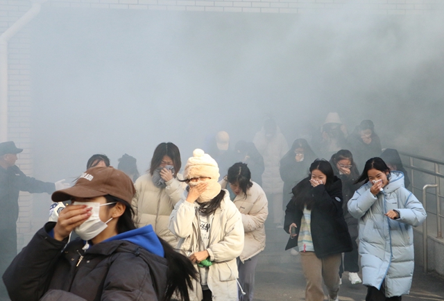 随着火灾报警声响起,消防应急疏散演练正式开始。演练按照全过程、全要素设定灾情,下达作战命令,指挥火灾扑救。在老师们的引导下,同学们捂住口鼻,迅速有序地从公寓紧急疏散到指定安全区域。演练结束后,济南市长清消防救援大队宣传处参谋李和珍对本次的消防演练活动进行了点评,肯定了整个演练过程井然有序,达到了预期的效果,同时提出逃生时出现的问题和改进措施,讲解了常用消防器材的使用方法。
