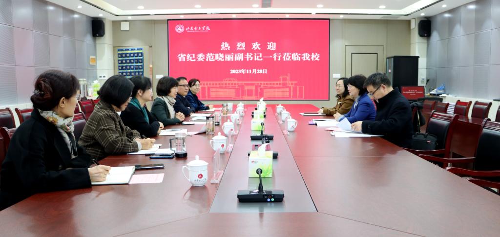 11月28日上午,省纪委副书记、省监委副主任范晓丽一行来学校调研指导工作。学校党委书记吕晓黎,党委副书记、校长李光红,党委副书记龙希利,党委委员、纪委书记、省监委驻山东女子学院监察专员杨恩红出席座谈会并陪同调研。