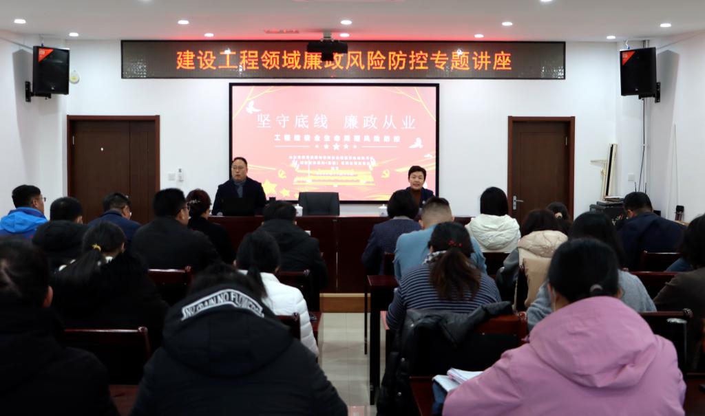 陈文从工程建设全生命周期解读、工程建设全生命周期风险点及防控措施、练好“三功”远离廉政风险等三个方面系统讲解了工程建设全过程、各环节的内容,对勘察设计、招标采购、工程施工、竣工验收等四个阶段的风险点进行了详细解读,用一个个典型案例告诫大家要坚守底线,廉洁从业。