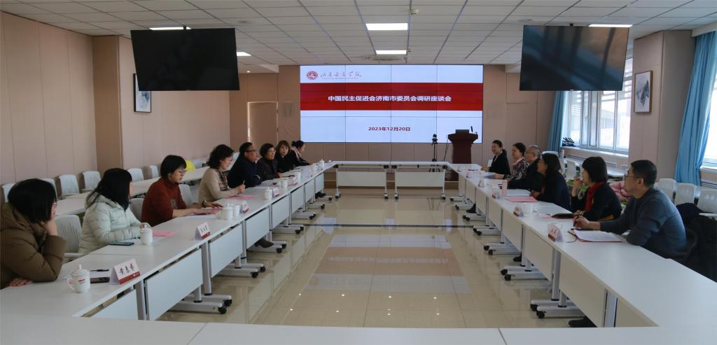12月20日上午,民进山东省委会副主委、济南市委会主委、市民营经济发展局局长潘荣庆一行6人来校,就深入落实驻济高校发挥统战优势助力省会发展联席会议精神、扎实推进民进省市区三级基层组织联动机制走深走实开展调研活动。党委书记吕晓黎、党委副书记龙希利、副校长刘恩允出席活动。