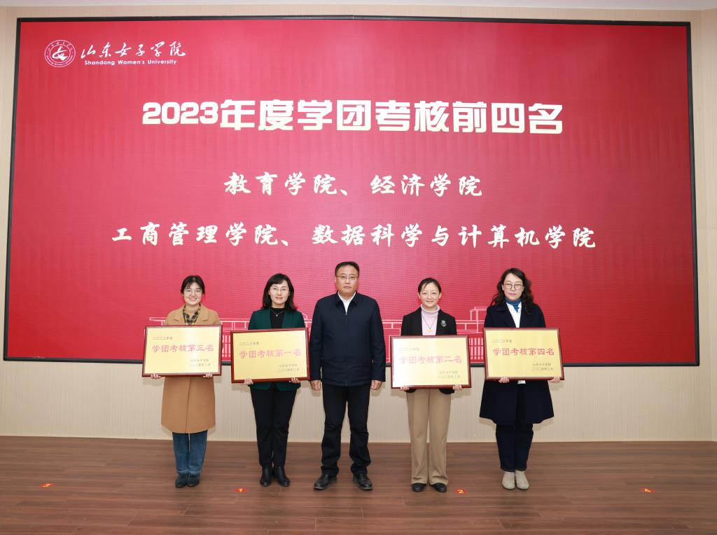 龙希利对2023年学团工作取得的成绩给予肯定,并做了主题为“凝心聚力潜心提升促发展 融合赋能蓄势奋发谋新篇——用心用情用力构建女院特色高质量学团工作体系”的讲话,对学团工作提出四点要求。一是高站位,提高学团工作在学校高质量发展中的贡献度。以立德树人为根本任务,把学团工作融入学校发展大局,坚持高站位谋划、高标准推进、高效率协同,形成协同协作、同向同行、互联互通的一体化育人格局。二是深融合,构建女院特色的高质量学团工作体系。坚持五育并举,将学团工作与基层党建、思想政治教育、科学研究、队伍建设、教育教学相互融合,提升学生成长成才的组织力、引领力和服务力。三是强赋能,蓄势奋发,打造“学工铁军”。加强学工队伍建设,工作上要有闯劲、拼劲、韧劲、钻劲和狠劲,做到肩上有责、心中有爱、眼中有光、胸中有墨、手中有艺、目中有人、脑中有弦、脚下有路。四是稳底线,促进学校高质量发展行稳致远。通过网格化管理体系进一步织密责任网、绷紧防护弦、筑牢防火墙,做到早排查、早研判、早施策、早处置,积极保障学生人身财产安全和心理健康。