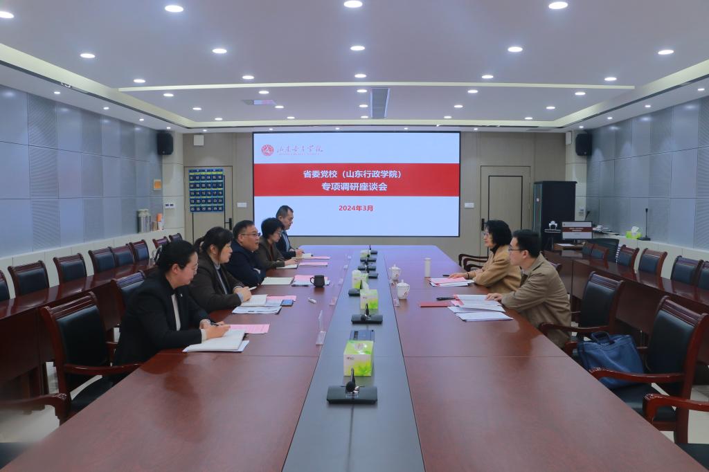 3月27日,省委党校(山东行政学院)二级巡视员于忠民、办公室四级调研员赵君一行来校调研。学校党委副书记龙希利出席调研座谈会,组织部全体人员参加座谈交流。