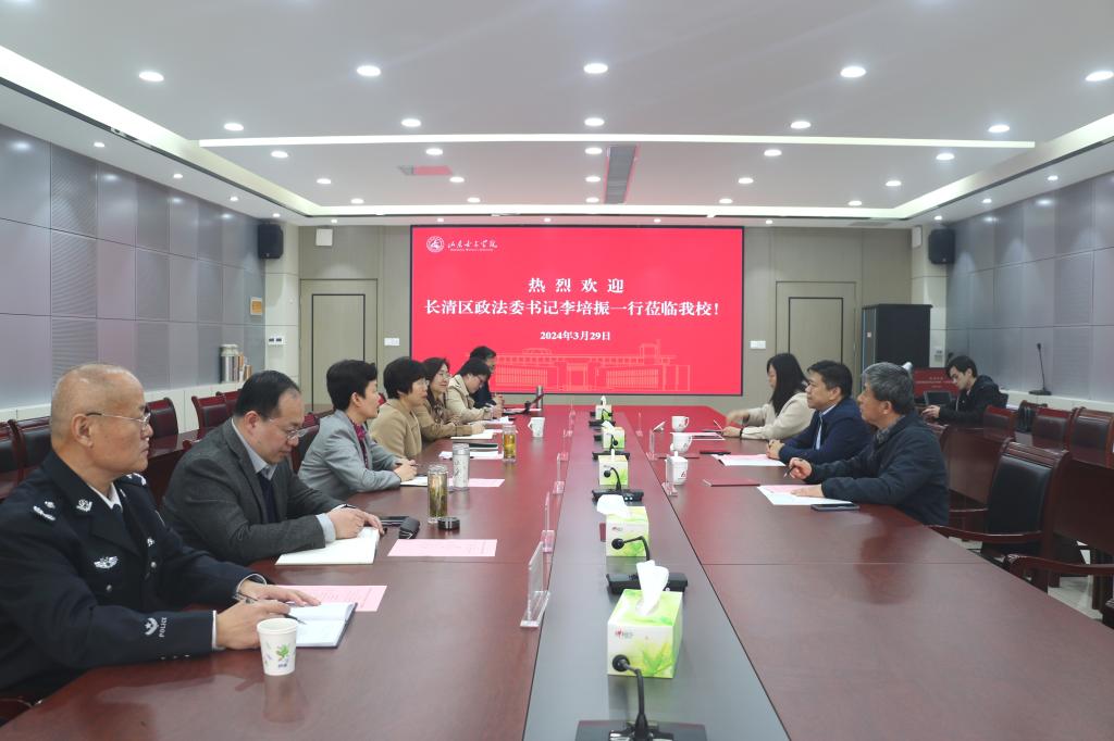 3月29日上午,长清区委常委、政法委书记李培振一行来校调研交流。学校党委书记吕晓黎出席座谈会,党委委员、副校长田立新主持会议。