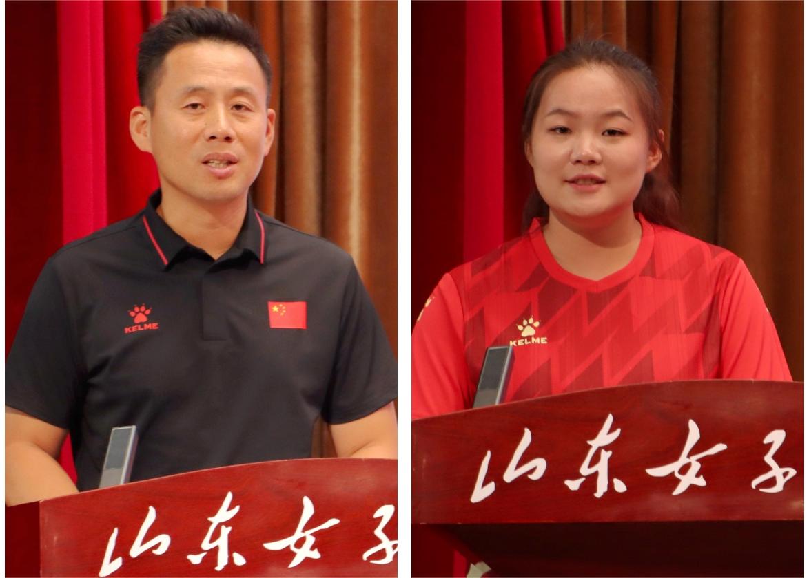 吕晓黎还感谢了本次比赛中两名随队记者同学,她们用镜头记录下赛场的实况。学校官微推出了近20期赛场战报,中国青年报、央视频、大众日报、山东教育发布、山东教育电视台等媒体竞相报道,为学校争得了荣誉。