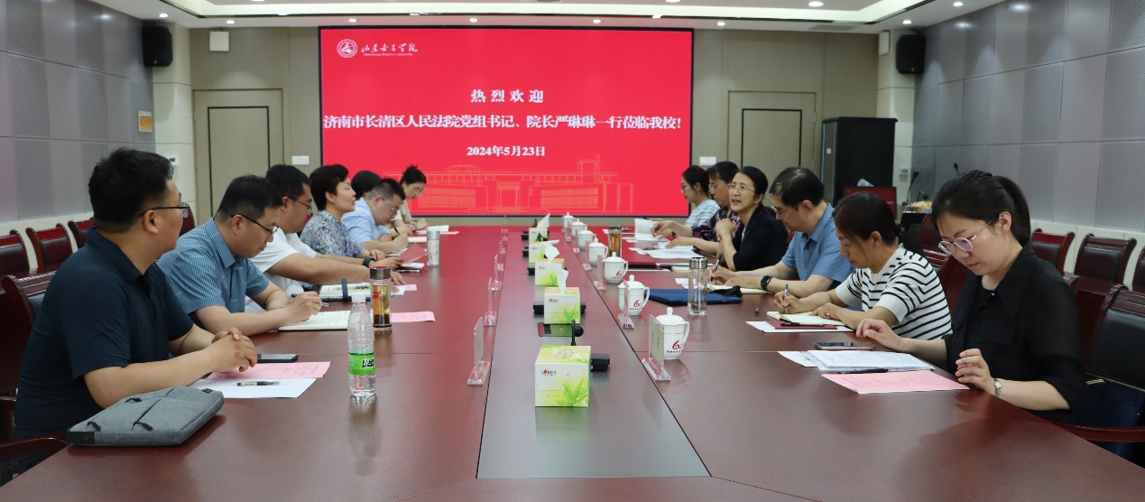 5月23日下午,济南市长清区人民法院党组书记、院长严琳琳一行来校调研座谈,与学校就法治工作建设、学生权益保护、学生实习实践等事宜开展深入交流。会议由党委委员、副校长、市人大代表田立新主持。