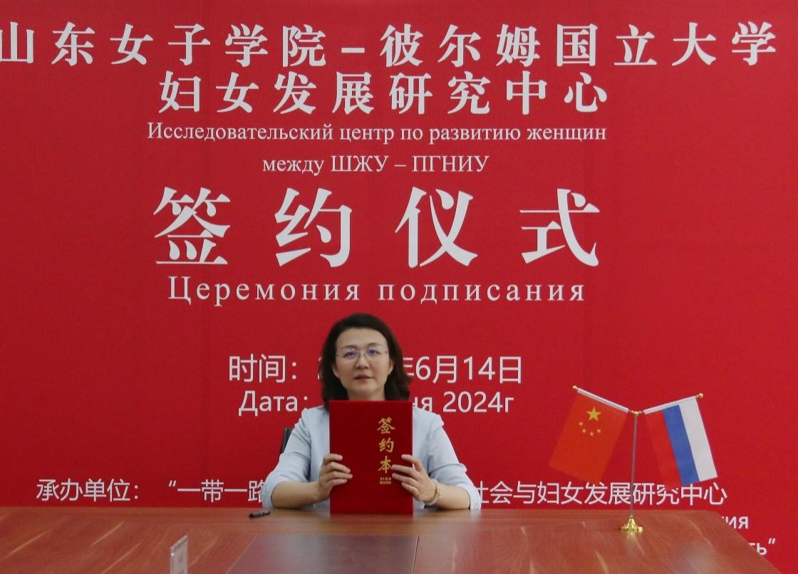 随后,双方校领导共同签署了山东女子学院-彼尔姆国立大学妇女发展研究中心合作协议。