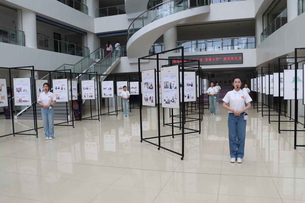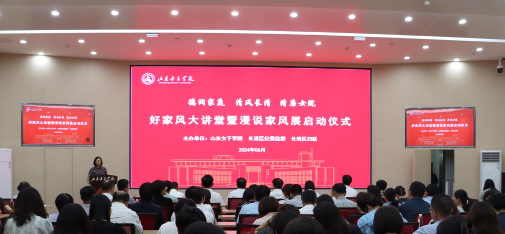 为深入学习贯彻习近平总书记明升体育:注重家庭家教家风建设的重要论述精神,推动党员干部重视家庭建设,以良好家风推进全面从严治党向纵深发展。6月14日上午,学校与长清区纪委监委、区妇联联合开展“德润家庭 清风长清 清廉女院”好家风大讲堂暨漫说家风展活动。学校党委副书记龙希利,省社科联原一级巡视员张宏明,山东管理学院党委委员、纪委书记、监察专员王兴盛,长清区政协副主席刘福云,长清区大学城党工委委员纪检监察工委书记商政,长清区纪委常委、区委巡察办主任王道水,长清区妇联党组书记、主席张丽出席启动仪式并观展。活动由校纪委书记、监察专员杨恩红主持。