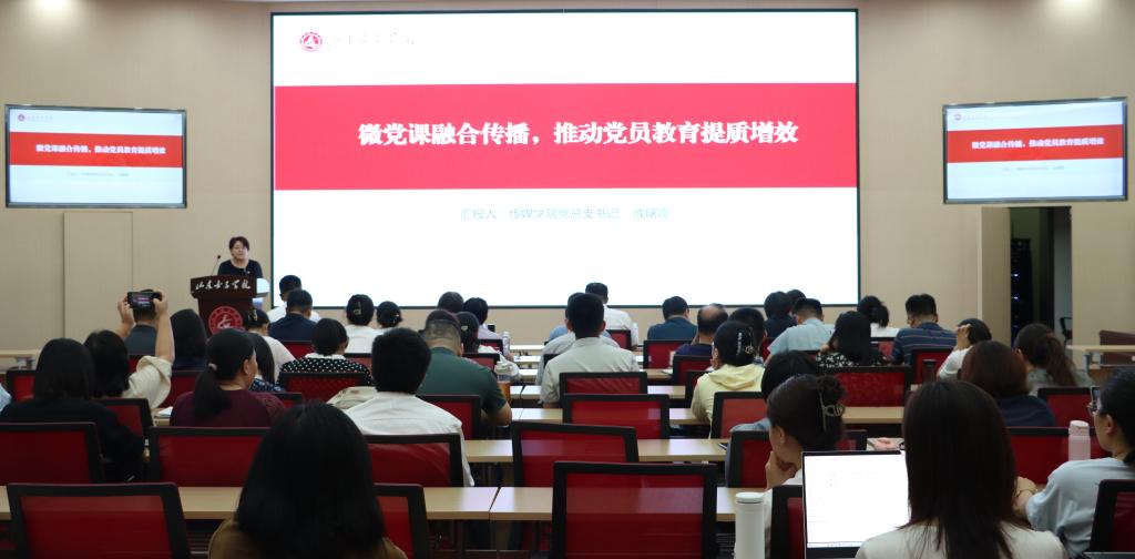 会上,传媒学院党总支书记成曙霞作题为《微党课融合传播推动党员教育提质增效》的交流发言。现场播放由传媒学院制作的党课视频《振兴路上的半边天》,该片获2023年度全省党员教育电视片(党课)观摩交流活动一等奖、全省高校“精品党课”一等奖。教师党员肖辉馨代表主创人员分享创作心得。