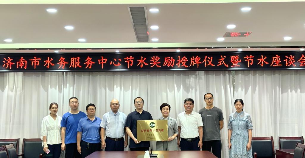 6月21日下午,济南市水务服务中心副主任白海瑞、节水服务部部长高斌、节水服务部高级经济师古金东等一行代表济南市城乡水务局表彰学校荣获“济南市节约用水奖励单位”一等奖,并代表省水利厅、省教育厅、省机关事务管理局授予学校“山东省节水型高校”,学校党委委员、副校长田立新,后勤管理处(基建处)负责人及相关人员参加授牌仪式和校园节约用水目标管理与业务指导。