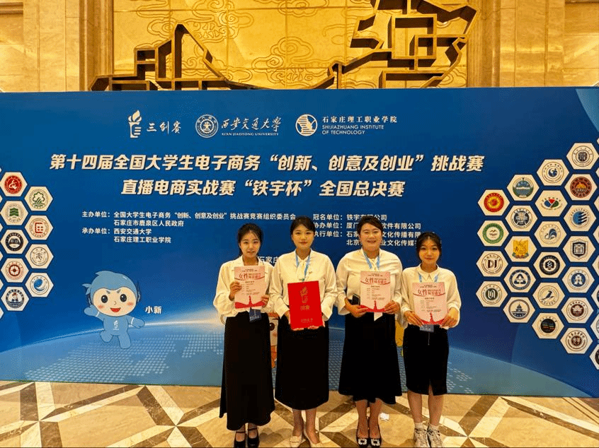 7月24日-25日,第十四届全国大学生电子商务“创新、创意及创业”挑战赛直播电商实战赛“铁宇杯”全国总决赛在石家庄理工职业学院举行,来自全国99所高校的86支队伍参加总决赛。学校音乐学院团队通过校赛、省赛、国赛的层层角逐,由宋小霞院长带领的辅导员李梅华和年轻博士孙颖姗、曲征三位教师指导的《女性味蕾盛宴》项目,最终脱颖而出获得国赛一等奖,创造了学校三创赛直播电商实战赛道最好成绩,实现了音乐学院三创赛国赛零突破。